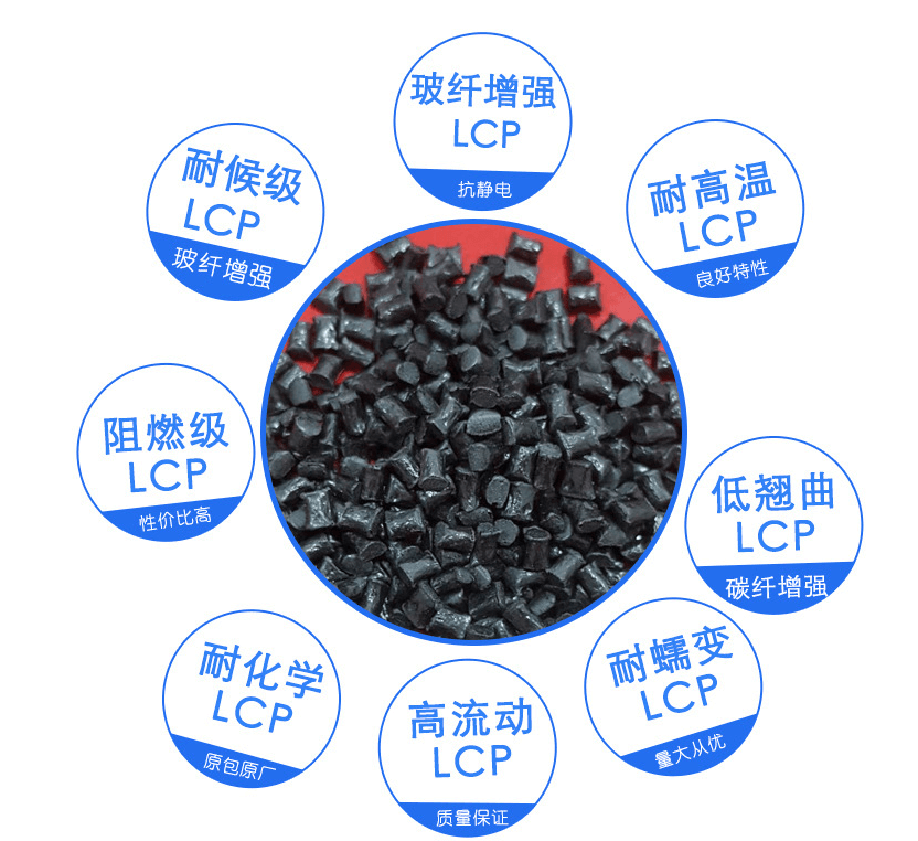 加纤LCP介绍:加玻璃纤维或长纤,矿物纤维简称(加纤LCP),LCP本来就是工业化液晶聚合物,加入玻纤15%-55%可以增强该材料的刚性,长用的是加30%玻璃纤维增强材料,该材料具有异常规整的纤维状结构特点,因而不增强的液晶塑料即可达到甚至超过普通工程塑料用百分之几十玻璃纤维增强后的机械强度及其模量的水平。加纤LCP特点