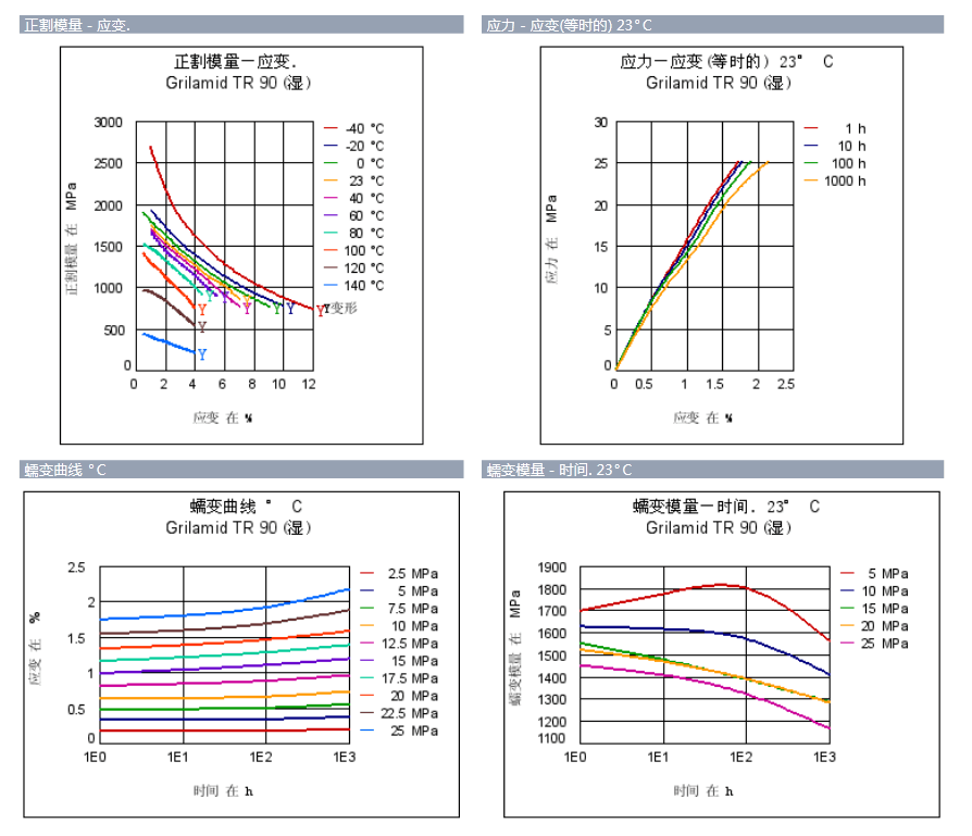 瑞士EMS化学Grilamid PA12(尼龙12) TR90是一种聚十二内酰胺树脂的高性能热塑性材料,球压硬度是90MPa,拉伸模量是1600MPa,玻璃化转变温度155°C。