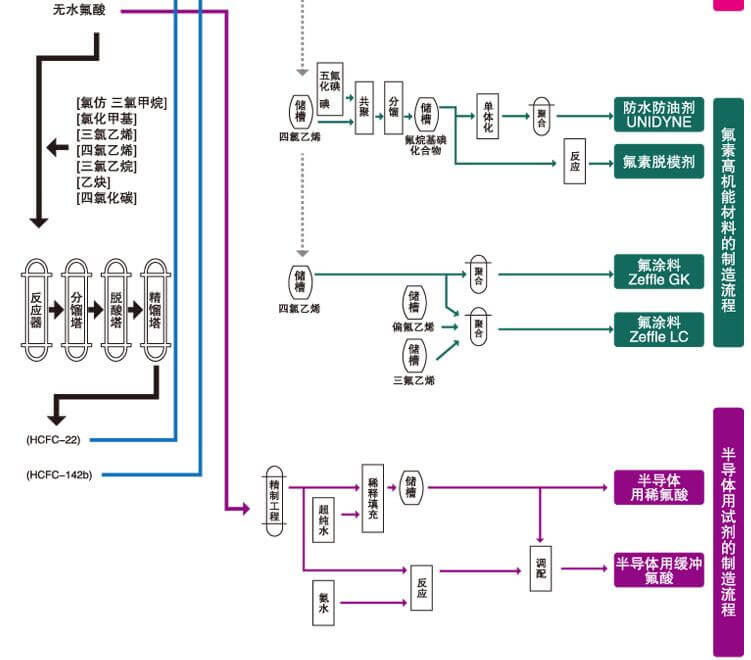 从基础化学品到高机能氟化学品、提供多种多样的产品和解决方案、为您创造富裕、安全、安心、环保的生活环境,世界顶级的技术力与广泛齐全的产品群,产品种类广泛、齐全,以全