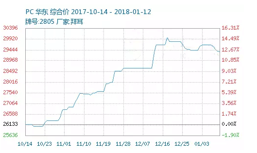预计,节前下游备货清淡行情难有明显改善,今日国内PC市场重心或将继续下行,华东PC市场低端收盘看在29000-30700元/吨,中高端收盘看在31000-32000元/吨。