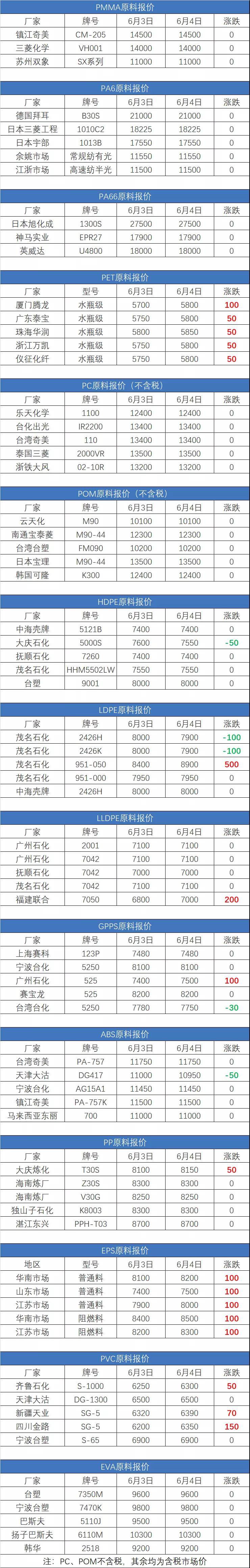 2020年6月4日塑胶原料实时报价