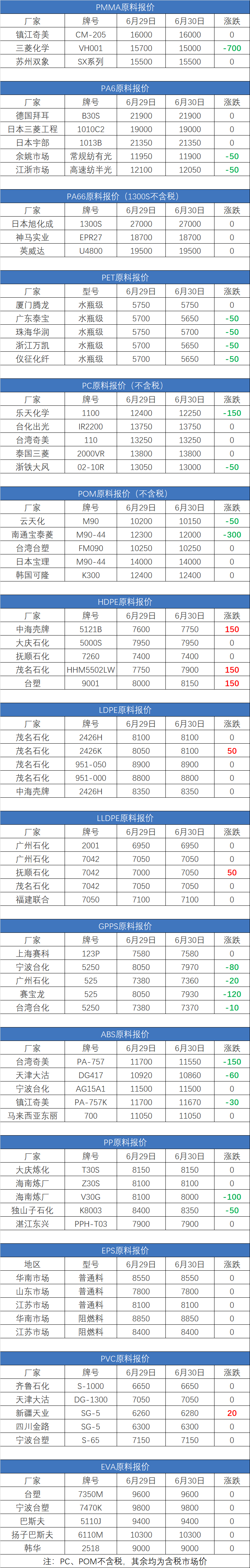 PVC塑胶原料:国内PVC生产企业销售价格部分稳中下调,企业检修减少及库存略增,短期企业销售压力增加;期货市场开盘小幅震荡,现货价格走跌,终端下游谨慎观望,预计今日PVC现货市场价格弱势震荡为主,华南电石五型主流价格参考在6250-6330元/吨左右。(未含税)
