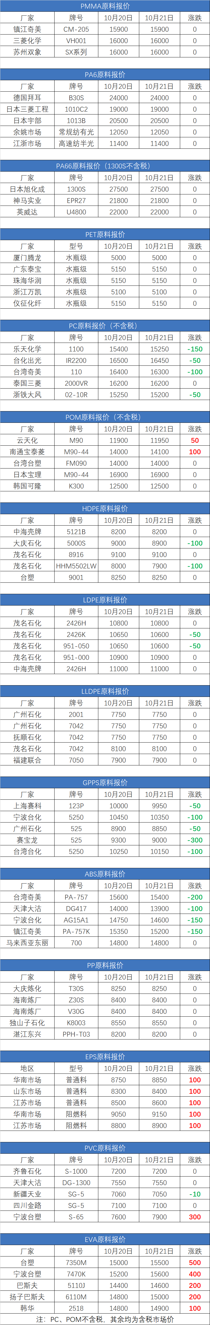 PC塑胶原料:国内PC市场震荡运行,观望气氛浓厚。国产厂商出厂继续上调/补涨300-1100元/吨,而市场方面运行存分化,华东市场部分继续上探,华南整体延续下跌态势。下游厂商维持刚需跟进,场内成交小单为主,原料双酚A维持回落态势,对PC市场心态形成打压,另外下游高价跟进迟缓,预计国内PC市场偏弱震荡运行,华南地区科思创2805主流价格参考在16100元/吨。(未含税)